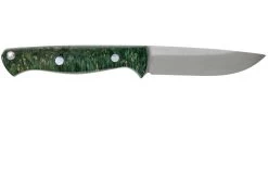 El Bark River Classic Clip Point Hunter es la interpretación de Bark River de los famosos cuchillos Drop Point hechos por Bob Loveless, pero con una hoja Clip point más puntiaguda. Según muchos, un cuchillo de caza perfecto. El tamaño es el mismo, pero el filo ha cambiado drásticamente. En concreto, tiene un filo convexo como corresponde a Bark River. El resultado es un filo más fuerte y afilado. El protector de acero para los dedos (virola) asegura que tu dedo no se deslice y termine en el filo. El mango tiene una forma ergonómica. Hay curvas donde es necesario y partes planas en las que los dedos puedan descansar cómodamente en diferentes posiciones.