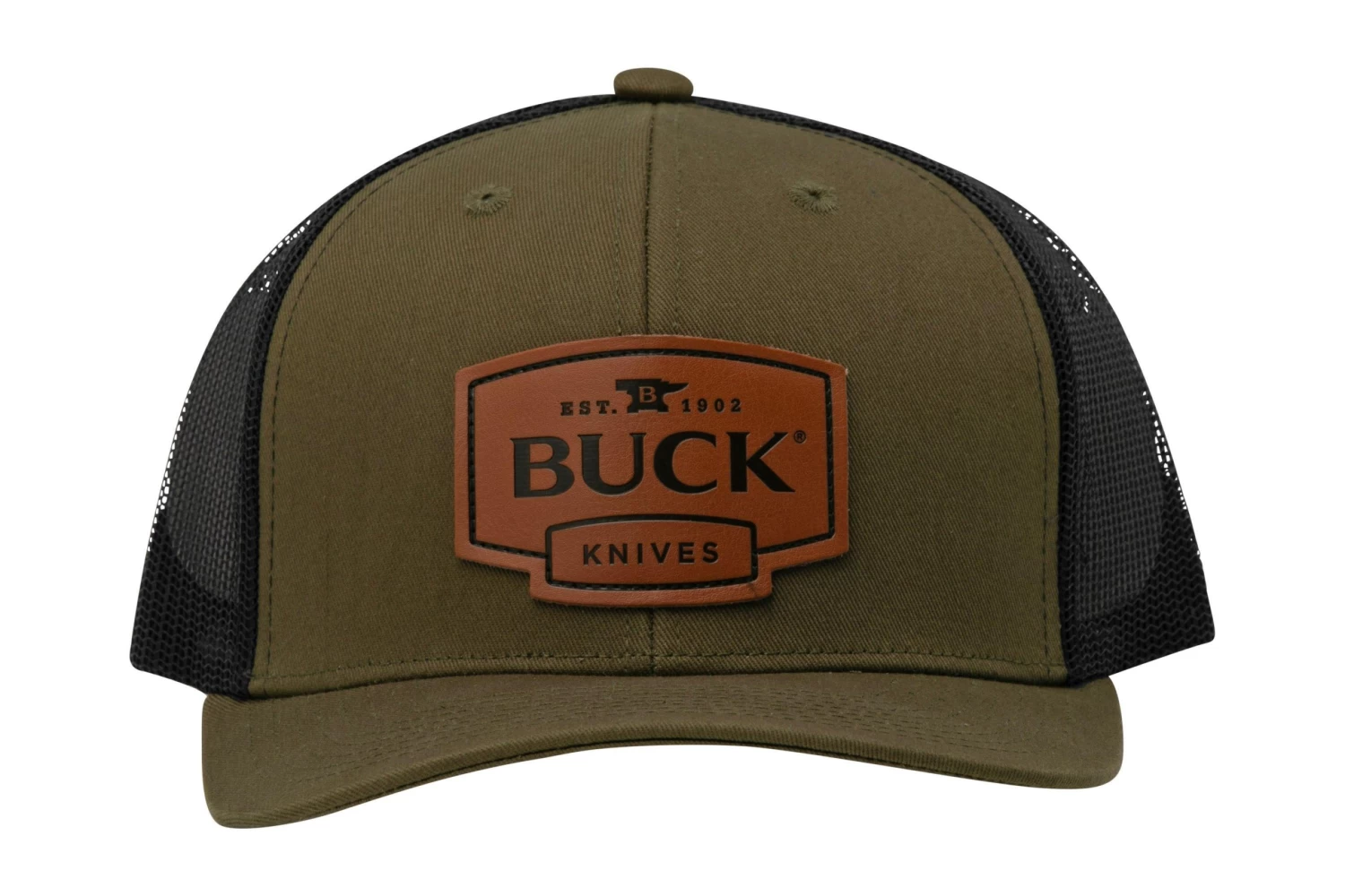 Buck Logo Leather Patch Cap 89160, OD Green/Black, Gorra