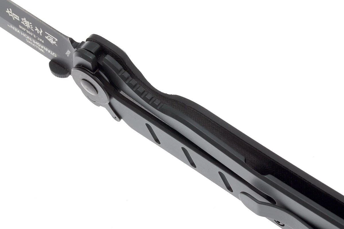 La CRKT Otanashi noh fue diseñada por James Williams, un experto y celebridad en el campo de las artes marciales y la defensa personal. Sus años de experiencia le han ayudado a crear un diseño práctico que es lo suficientemente compacto como para no ser una carga al transportarlo, pero a la vez siendo también un cuchillo realmente resistente. La hoja está diseñada para rendir al máximo al perforar cosas. Cuando se abre, puede bloquearse mediante un sólido cierre de marco, llamado framelock. Puedes crear la firmeza de un cuchillo fijo asegurando aún más el bloqueo.