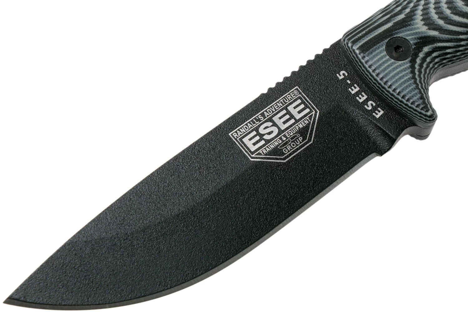 ESEE Model 5 Black Blade 3D Grey-Black G10 Cuchillo De Supervivencia 5PB-002 Funda De Kydex + Clip Plate